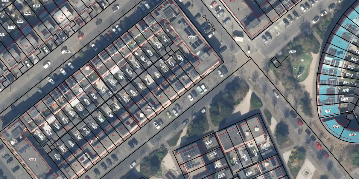 Gebruik de zoekbalk of klik op een perceel voor informatie over de adressen binnen dit perceel.