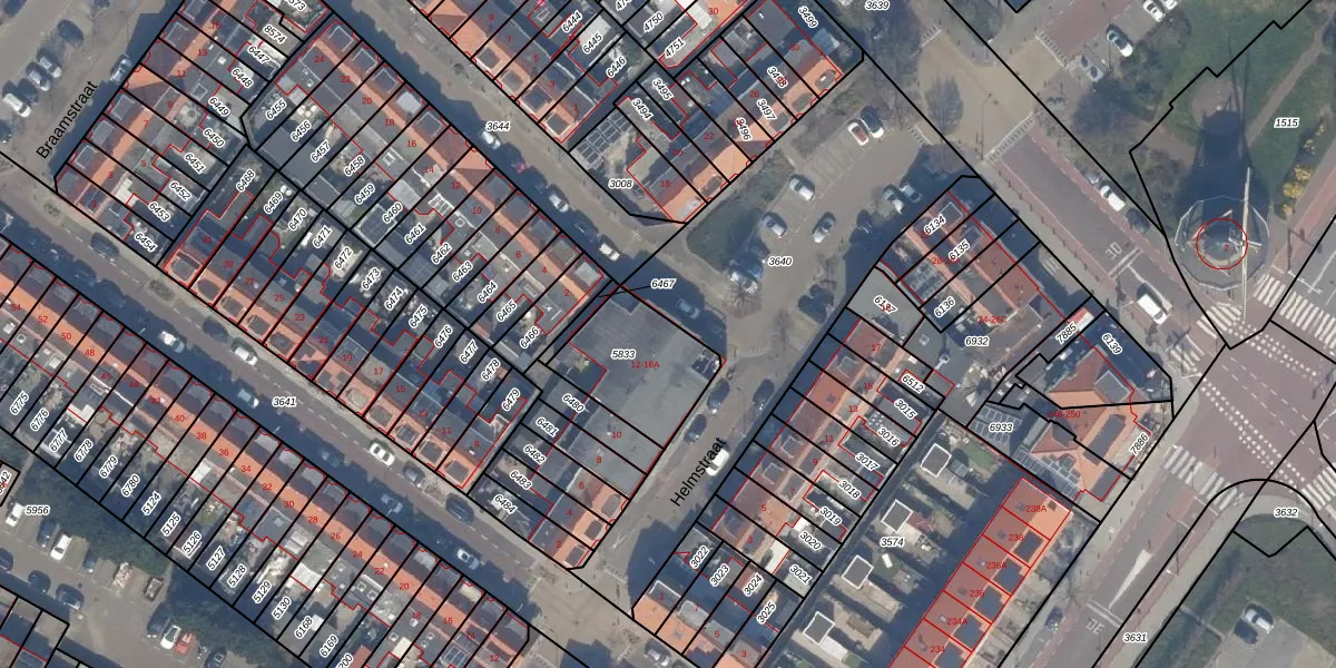 Helmstraat 16-A is gelegen op kadastraal perceel MSR00G5833. Deze kadastrale aanduiding is uniek en wordt gebruikt door het Kadaster om eigendomsrechten en andere zakelijke rechten vast te leggen. Het perceel maakt onderdeel uit van de kadastrale gemeente Monster.