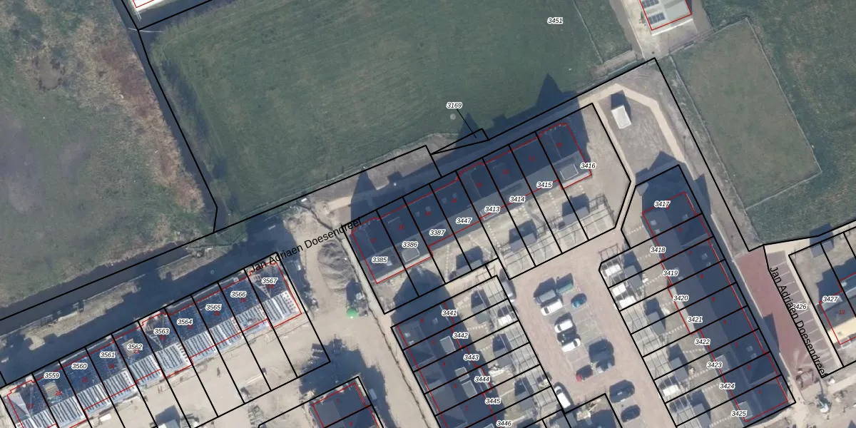 Jan Adriaen Doesendreef 15 is gelegen op kadastraal perceel MSR00I3387. Deze kadastrale aanduiding is uniek en wordt gebruikt door het Kadaster om eigendomsrechten en andere zakelijke rechten vast te leggen. Het perceel maakt onderdeel uit van de kadastrale gemeente Monster.