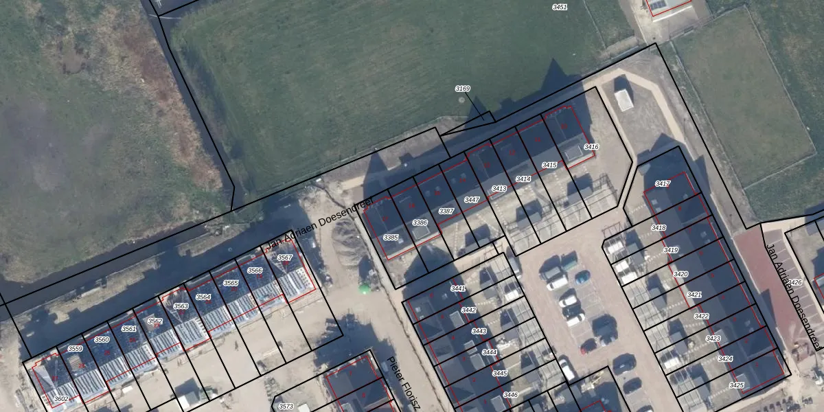 Gebruik de zoekbalk of klik op een perceel voor informatie over de adressen binnen dit perceel.