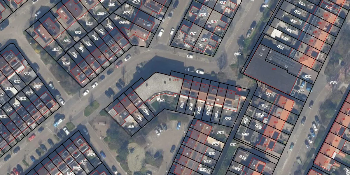 Het adres is gelegen op perceel 2168 in de sectie F en de kadastrale gemeente Monster. De kadastrale aanduiding is aldus MSR00-F-2168. Het perceel is kleiner dan gemiddeld in Monster. Het perceel is 496 m² groot, terwijl het gemiddelde ligt op 1816,4 m². De grootste perceeloppervlakte in de kadastrale gemeente is 5,16 km². De kleinste oppervlakte bedraagt 0 m². Op het perceel liggen in totaal 8 adressen. De huidige grenzen van het perceel zijn digitaal in de Basisregistratie Kadaster (BRK) geregistreerd op 08-01-2004.