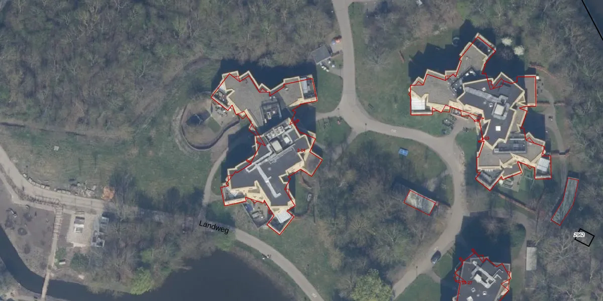 Het perceel waarop Landweg 2 staat heeft een oppervlakte van 38,3 ha. Dit is een zeer groot perceel. De perceeloppervlakte wordt geregistreerd door het Kadaster. Gedetailleerde informatie over de maten van dit perceel kunt u vinden in het rapport Kadastrale kaart met maatvoering van Landweg 2.