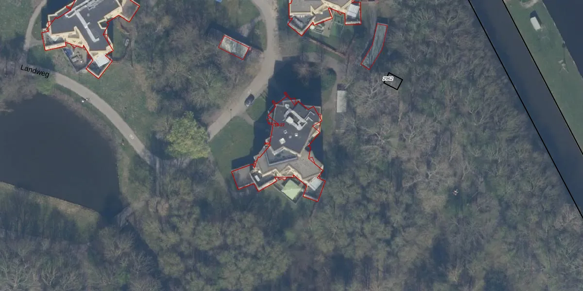 Het perceel waarop Landweg 25 staat heeft een oppervlakte van 38,3 ha. Dit is een zeer groot perceel. De perceeloppervlakte wordt geregistreerd door het Kadaster. Gedetailleerde informatie over de maten van dit perceel kunt u vinden in het rapport Kadastrale kaart met maatvoering van Landweg 25.