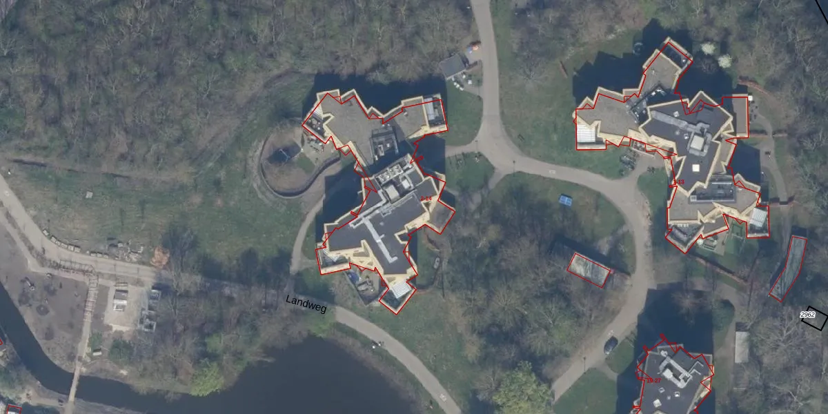 Het perceel waarop Landweg 6 staat heeft een oppervlakte van 38,3 ha. Dit is een zeer groot perceel. De perceeloppervlakte wordt geregistreerd door het Kadaster. Gedetailleerde informatie over de maten van dit perceel kunt u vinden in het rapport Kadastrale kaart met maatvoering van Landweg 6.