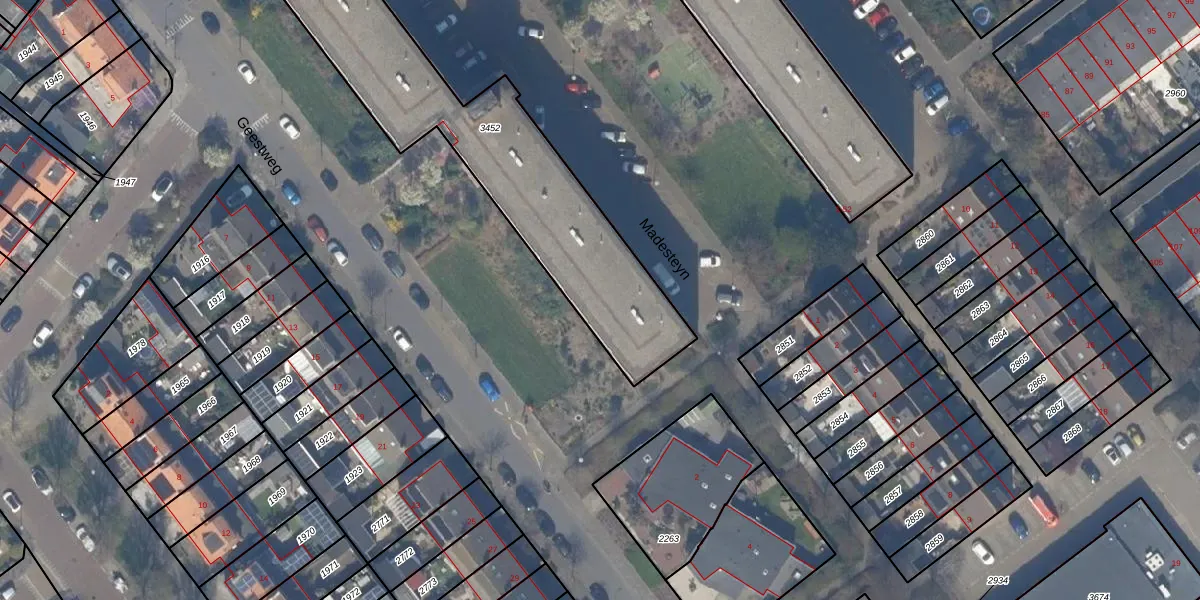 Het perceel waarop Madesteyn 29 staat heeft een oppervlakte van 1178 m². Dit is een zeer groot perceel. De perceeloppervlakte wordt geregistreerd door het Kadaster. Gedetailleerde informatie over de maten van dit perceel kunt u vinden in het rapport Kadastrale kaart met maatvoering van Madesteyn 29.