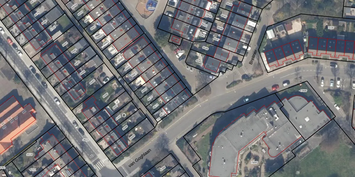 Gebruik de zoekbalk of klik op een perceel voor informatie over de adressen binnen dit perceel.