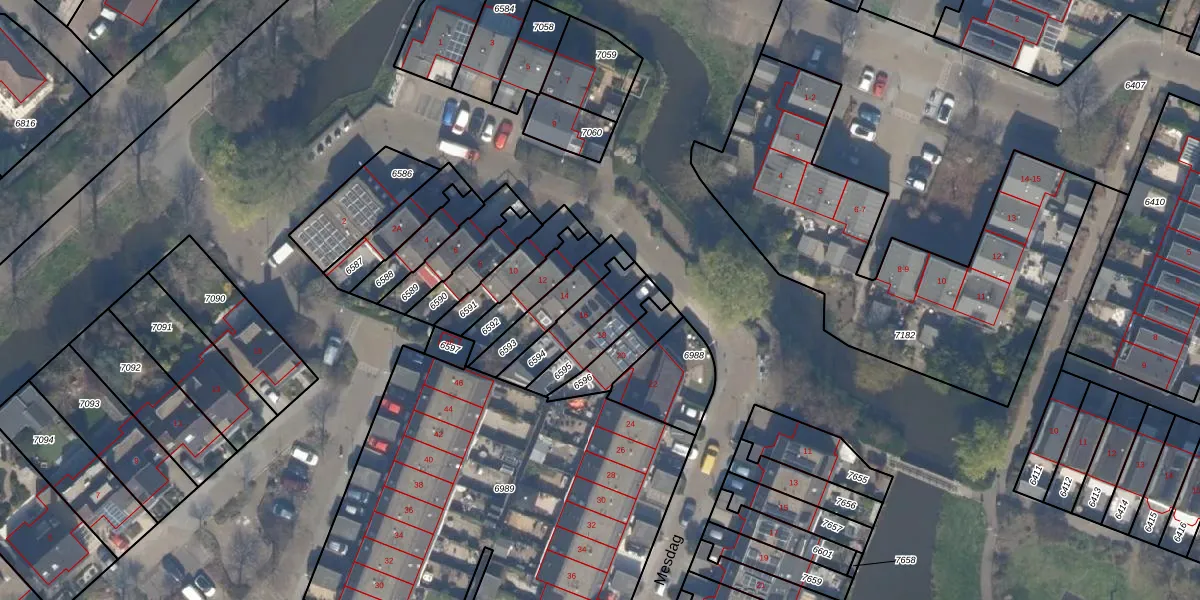 Gebruik de zoekbalk of klik op een perceel voor informatie over de adressen binnen dit perceel.