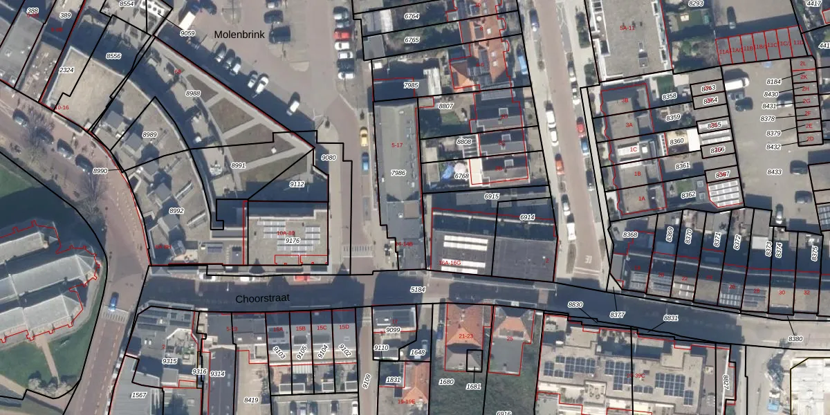 Het perceel waarop Molenbrink 9 staat heeft een oppervlakte van 402 m². Dit is een groot perceel. De perceeloppervlakte wordt geregistreerd door het Kadaster. Gedetailleerde informatie over de maten van dit perceel kunt u vinden in het rapport Kadastrale kaart met maatvoering van Molenbrink 9.