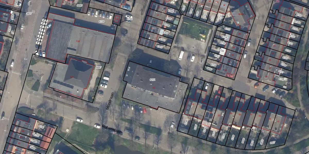 Het perceel waarop Mondriaan 65 staat heeft een oppervlakte van 925 m². Dit is een groot perceel. De perceeloppervlakte wordt geregistreerd door het Kadaster. Gedetailleerde informatie over de maten van dit perceel kunt u vinden in het rapport Kadastrale kaart met maatvoering van Mondriaan 65.