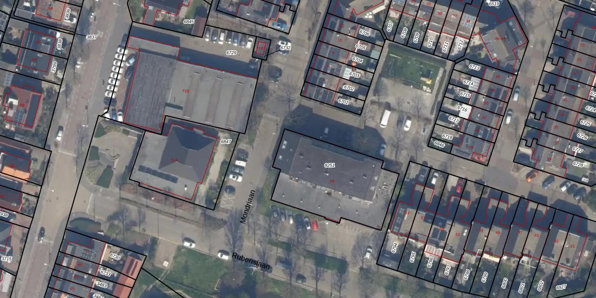 Het perceel waarop Mondriaan 69 staat heeft een oppervlakte van 925 m². Dit is een groot perceel. De perceeloppervlakte wordt geregistreerd door het Kadaster. Gedetailleerde informatie over de maten van dit perceel kunt u vinden in het rapport Kadastrale kaart met maatvoering van Mondriaan 69.
