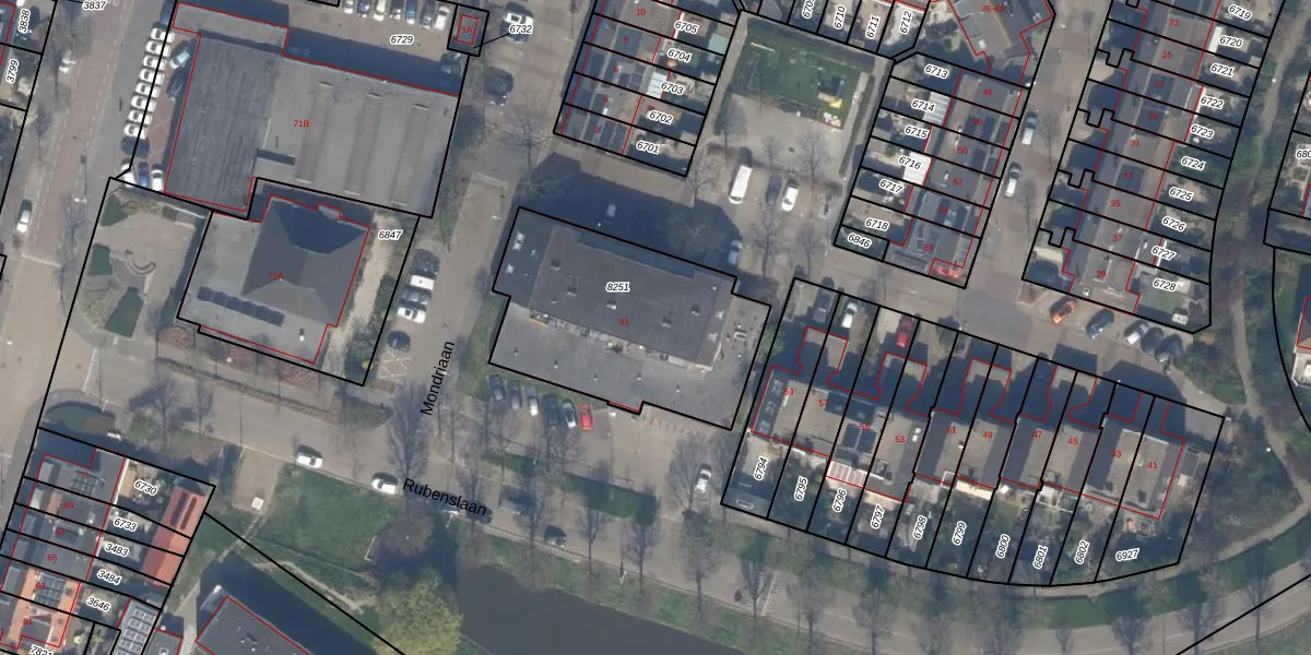 Het perceel waarop Mondriaan 73 staat heeft een oppervlakte van 925 m². Dit is een groot perceel. De perceeloppervlakte wordt geregistreerd door het Kadaster. Gedetailleerde informatie over de maten van dit perceel kunt u vinden in het rapport Kadastrale kaart met maatvoering van Mondriaan 73.