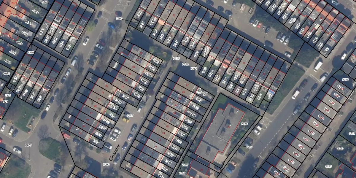Het perceel waarop Oleander 25 staat heeft een oppervlakte van 123 m². Dit is een middelgroot perceel. De perceeloppervlakte wordt geregistreerd door het Kadaster. Gedetailleerde informatie over de maten van dit perceel kunt u vinden in het rapport Kadastrale kaart met maatvoering van Oleander 25.