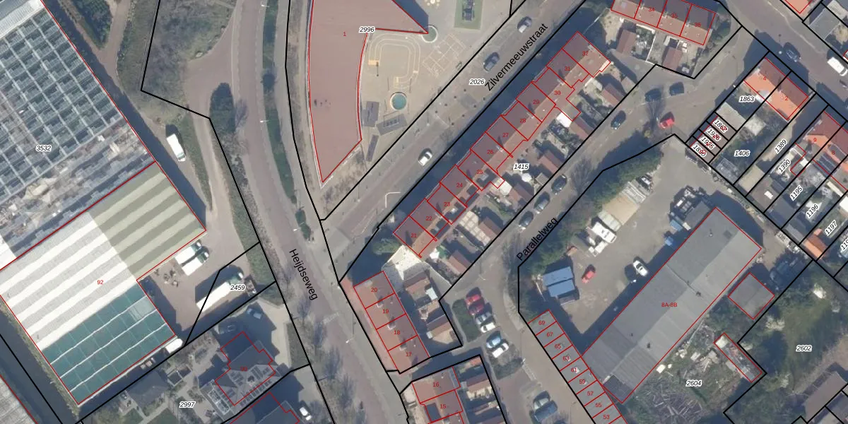 Parallelweg 22 is gelegen op kadastraal perceel MSR00F1415. Deze kadastrale aanduiding is uniek en wordt gebruikt door het Kadaster om eigendomsrechten en andere zakelijke rechten vast te leggen. Het perceel maakt onderdeel uit van de kadastrale gemeente Monster.