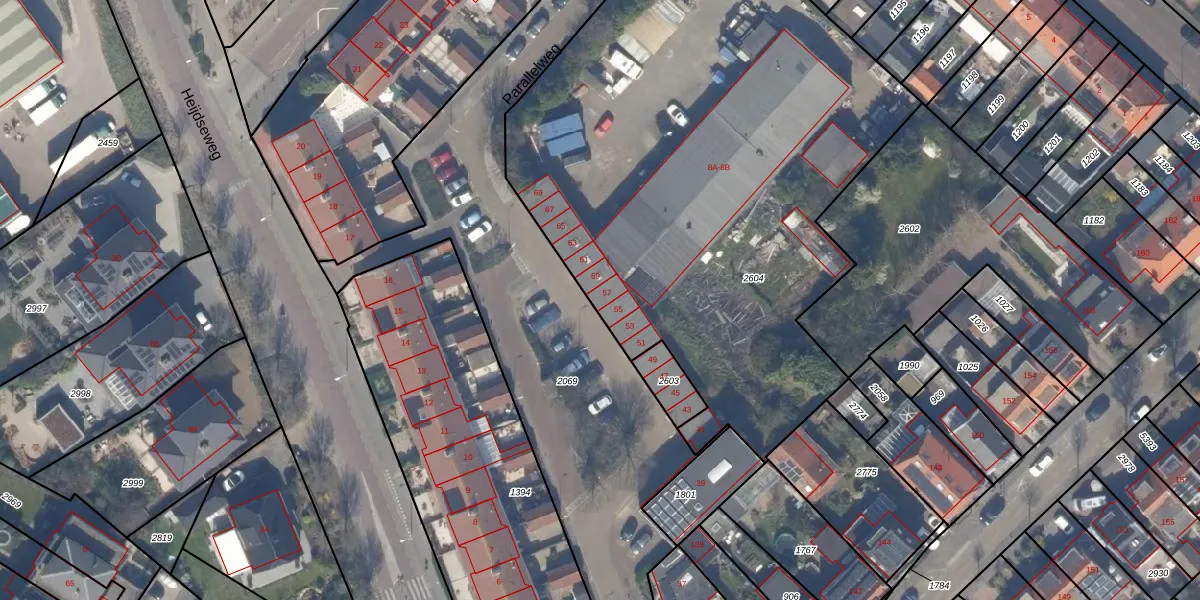 Het perceel waarop Parallelweg 57 staat heeft een oppervlakte van 3454 m². Dit is een zeer groot perceel. De perceeloppervlakte wordt geregistreerd door het Kadaster. Gedetailleerde informatie over de maten van dit perceel kunt u vinden in het rapport Kadastrale kaart met maatvoering van Parallelweg 57.