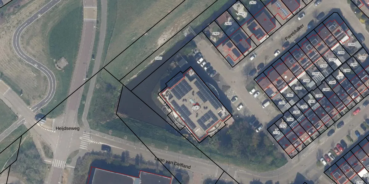 Parelduiker 56 is gelegen op kadastraal perceel MSR00F2187. Deze kadastrale aanduiding is uniek en wordt gebruikt door het Kadaster om eigendomsrechten en andere zakelijke rechten vast te leggen. Het perceel maakt onderdeel uit van de kadastrale gemeente Monster.