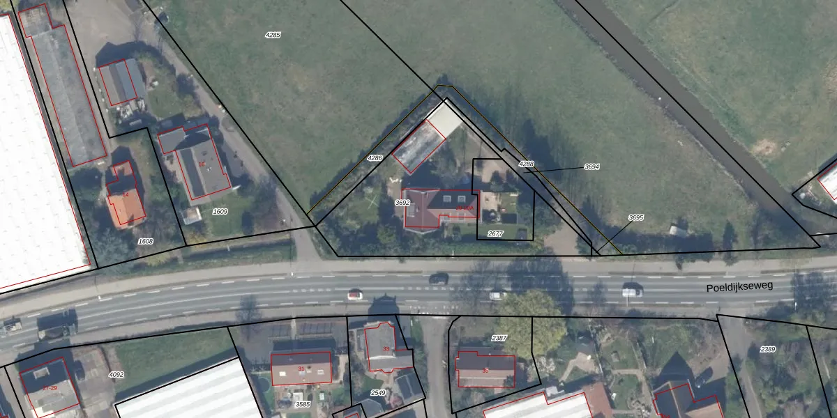 Het perceel waarop Poeldijkseweg 20-A staat heeft een oppervlakte van 1110 m². Dit is een zeer groot perceel. De perceeloppervlakte wordt geregistreerd door het Kadaster. Gedetailleerde informatie over de maten van dit perceel kunt u vinden in het rapport Kadastrale kaart met maatvoering van Poeldijkseweg 20-A.