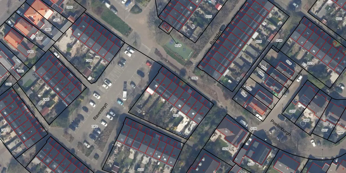 Het perceel waarop Ravesteyn 90 staat heeft een oppervlakte van 1069 m². Dit is een zeer groot perceel. De perceeloppervlakte wordt geregistreerd door het Kadaster. Gedetailleerde informatie over de maten van dit perceel kunt u vinden in het rapport Kadastrale kaart met maatvoering van Ravesteyn 90.