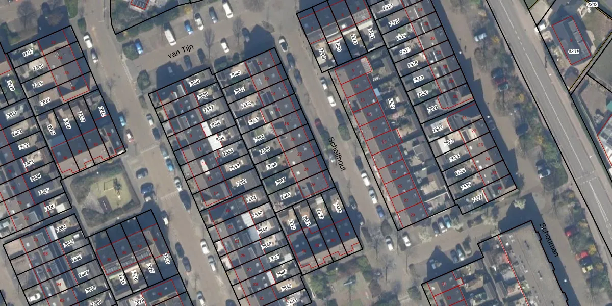 Het perceel waarop Schelfhout 22 staat heeft een oppervlakte van 116 m². Dit is een middelgroot perceel. De perceeloppervlakte wordt geregistreerd door het Kadaster. Gedetailleerde informatie over de maten van dit perceel kunt u vinden in het rapport Kadastrale kaart met maatvoering van Schelfhout 22.