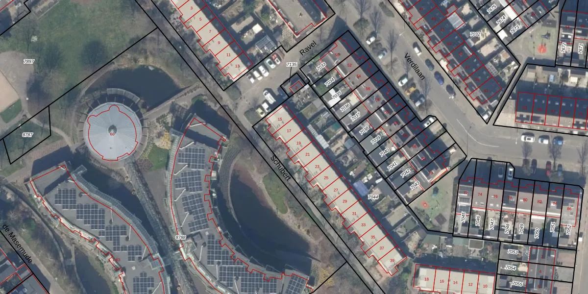 Het perceel waarop Schubert 19 staat heeft een oppervlakte van 2368 m². Dit is een zeer groot perceel. De perceeloppervlakte wordt geregistreerd door het Kadaster. Gedetailleerde informatie over de maten van dit perceel kunt u vinden in het rapport Kadastrale kaart met maatvoering van Schubert 19.