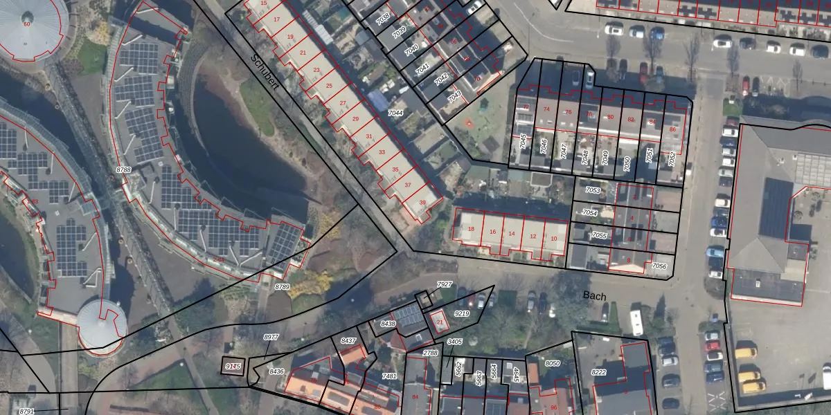 Het perceel waarop Schubert 39 staat heeft een oppervlakte van 2368 m². Dit is een zeer groot perceel. De perceeloppervlakte wordt geregistreerd door het Kadaster. Gedetailleerde informatie over de maten van dit perceel kunt u vinden in het rapport Kadastrale kaart met maatvoering van Schubert 39.