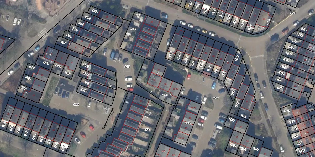 Het adres is gelegen op perceel 6369 in de sectie G en de kadastrale gemeente Monster. De kadastrale aanduiding is aldus MSR00-G-6369. Het perceel is kleiner dan gemiddeld in Monster. Het perceel is 507 m² groot, terwijl het gemiddelde ligt op 1817,87 m². De grootste perceeloppervlakte in de kadastrale gemeente is 5,16 km². De kleinste oppervlakte bedraagt 0 m². Er zijn 5 adressen aanwezig op het perceel. De huidige grenzen van het perceel zijn digitaal in de Basisregistratie Kadaster (BRK) geregistreerd op 08-01-2004.