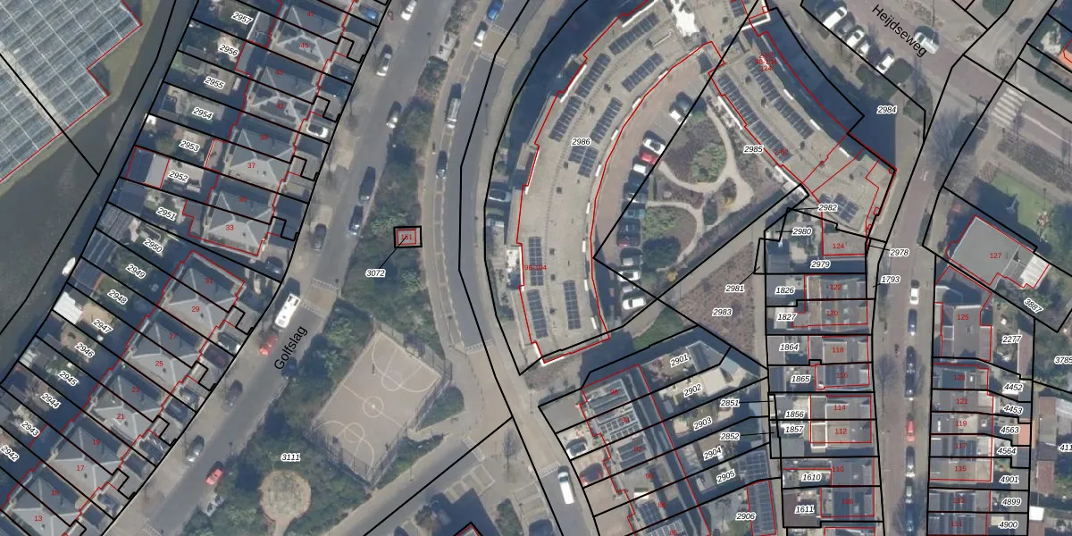 Het adres is gelegen op perceel 2986 in de sectie F en de kadastrale gemeente Monster. De kadastrale aanduiding is aldus MSR00-F-2986. De gemiddelde perceeloppervlakte in de kadastrale gemeente Monster is 1816,4 m². Dit perceel is met zijn 2111 m² dus groter dan gemiddeld. Het grootste perceel in de kadastrale gemeente is 5,16 km². Het kleinste perceel heeft een oppervlakte van 0 m². Op het perceel zijn 32 adressen aanwezig. De huidige grenzen van het perceel zijn digitaal in de Basisregistratie Kadaster (BRK) geregistreerd op 10-07-2007.
