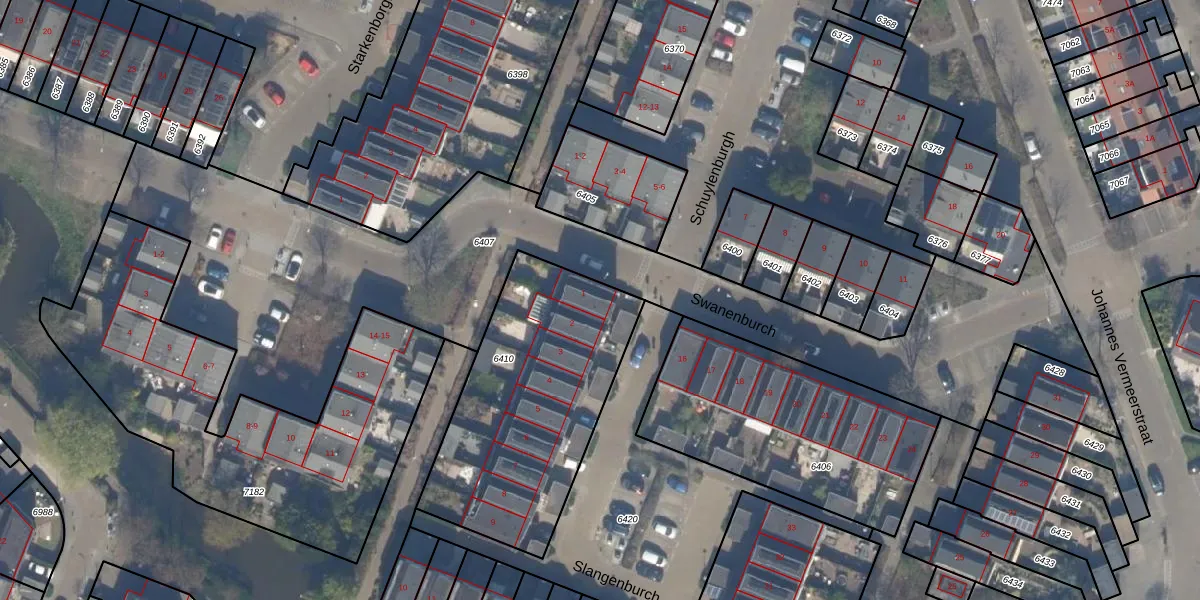 Slangenburch 1 is gelegen op kadastraal perceel MSR00G6410. Deze kadastrale aanduiding is uniek en wordt gebruikt door het Kadaster om eigendomsrechten en andere zakelijke rechten vast te leggen. Het perceel maakt onderdeel uit van de kadastrale gemeente Monster.