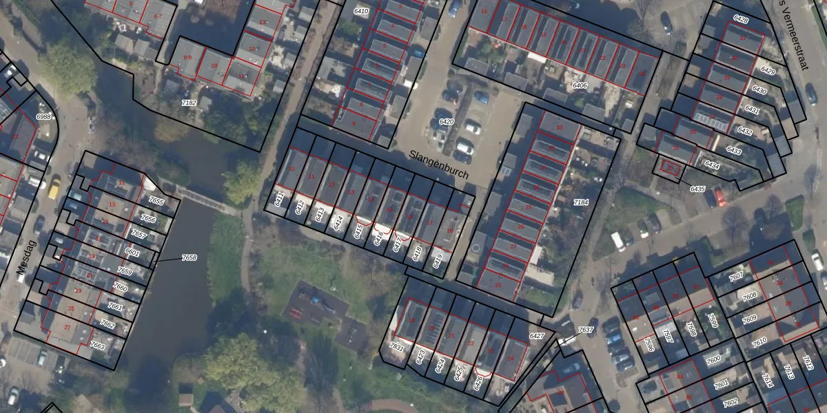 Slangenburch 16 is gelegen op kadastraal perceel MSR00G6417. Deze kadastrale aanduiding is uniek en wordt gebruikt door het Kadaster om eigendomsrechten en andere zakelijke rechten vast te leggen. Het perceel maakt onderdeel uit van de kadastrale gemeente Monster.