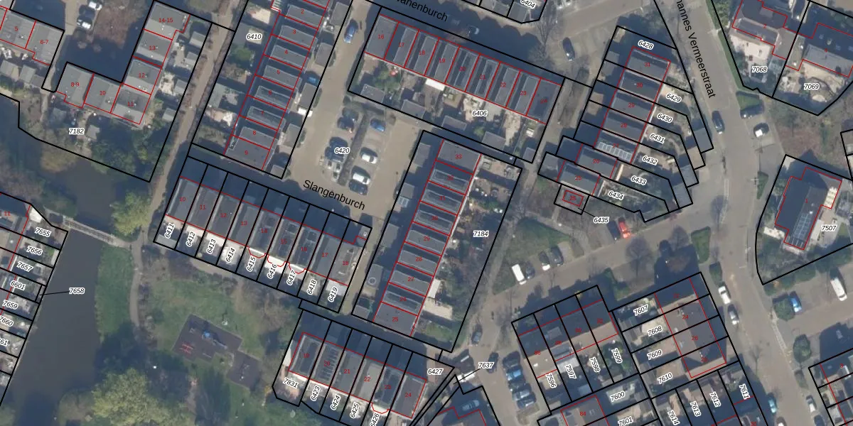Slangenburch 30 is gelegen op kadastraal perceel MSR00G7184. Deze kadastrale aanduiding is uniek en wordt gebruikt door het Kadaster om eigendomsrechten en andere zakelijke rechten vast te leggen. Het perceel maakt onderdeel uit van de kadastrale gemeente Monster.