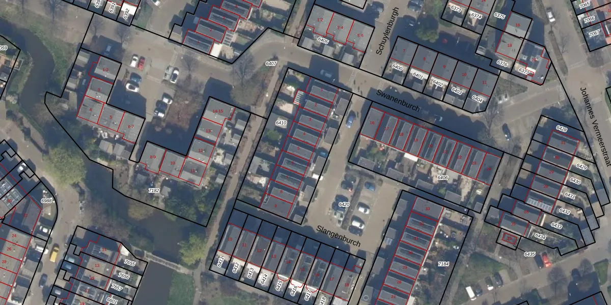 Slangenburch 5 is gelegen op kadastraal perceel MSR00G6410. Deze kadastrale aanduiding is uniek en wordt gebruikt door het Kadaster om eigendomsrechten en andere zakelijke rechten vast te leggen. Het perceel maakt onderdeel uit van de kadastrale gemeente Monster.