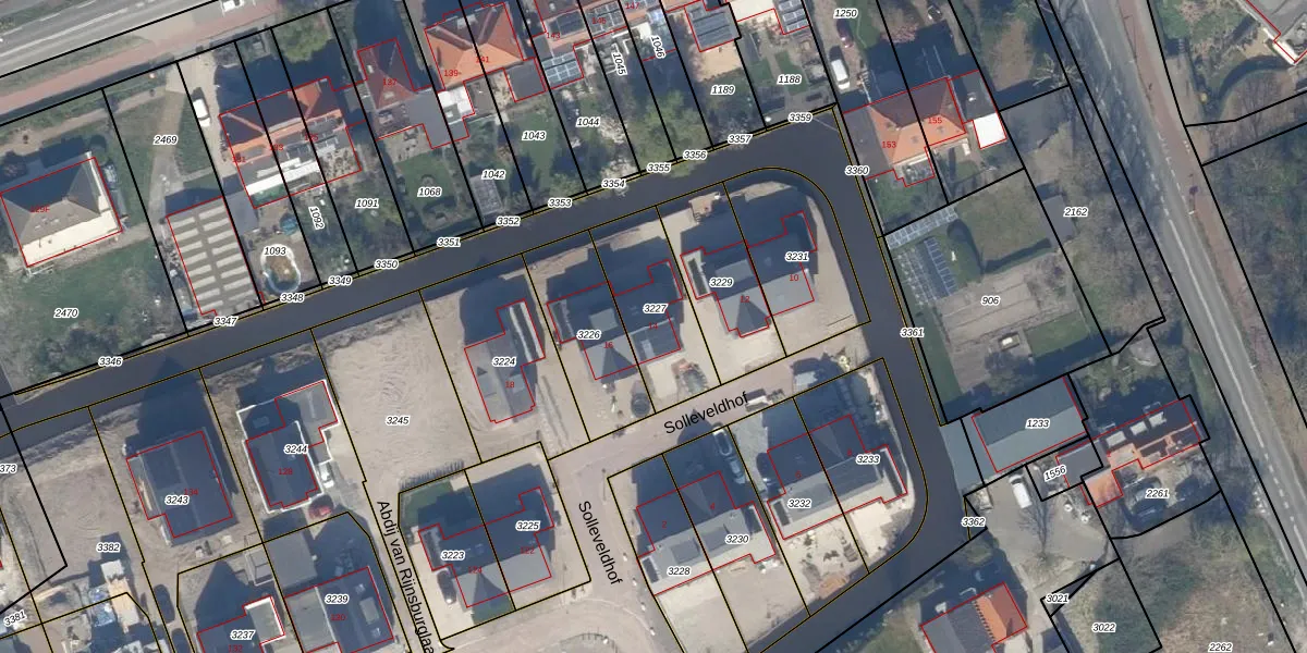 Het perceel waarop Solleveldhof 14 staat heeft een oppervlakte van 322 m². Dit is een groot perceel. De perceeloppervlakte wordt geregistreerd door het Kadaster. Gedetailleerde informatie over de maten van dit perceel kunt u vinden in het rapport Kadastrale kaart met maatvoering van Solleveldhof 14.
