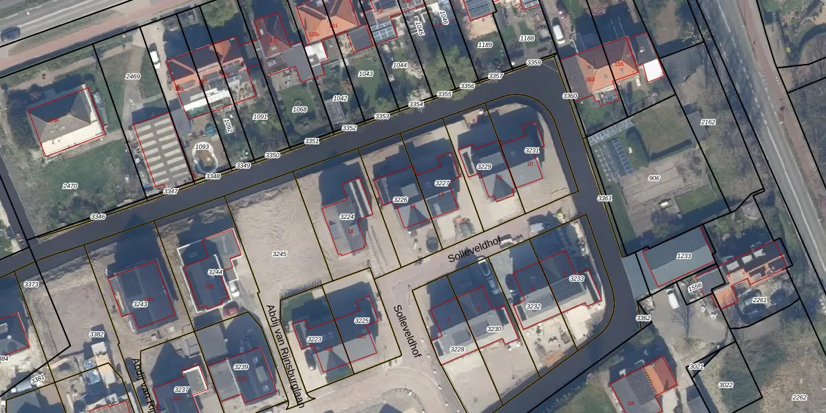 Het perceel waarop Solleveldhof 16 staat heeft een oppervlakte van 330 m². Dit is een groot perceel. De perceeloppervlakte wordt geregistreerd door het Kadaster. Gedetailleerde informatie over de maten van dit perceel kunt u vinden in het rapport Kadastrale kaart met maatvoering van Solleveldhof 16.