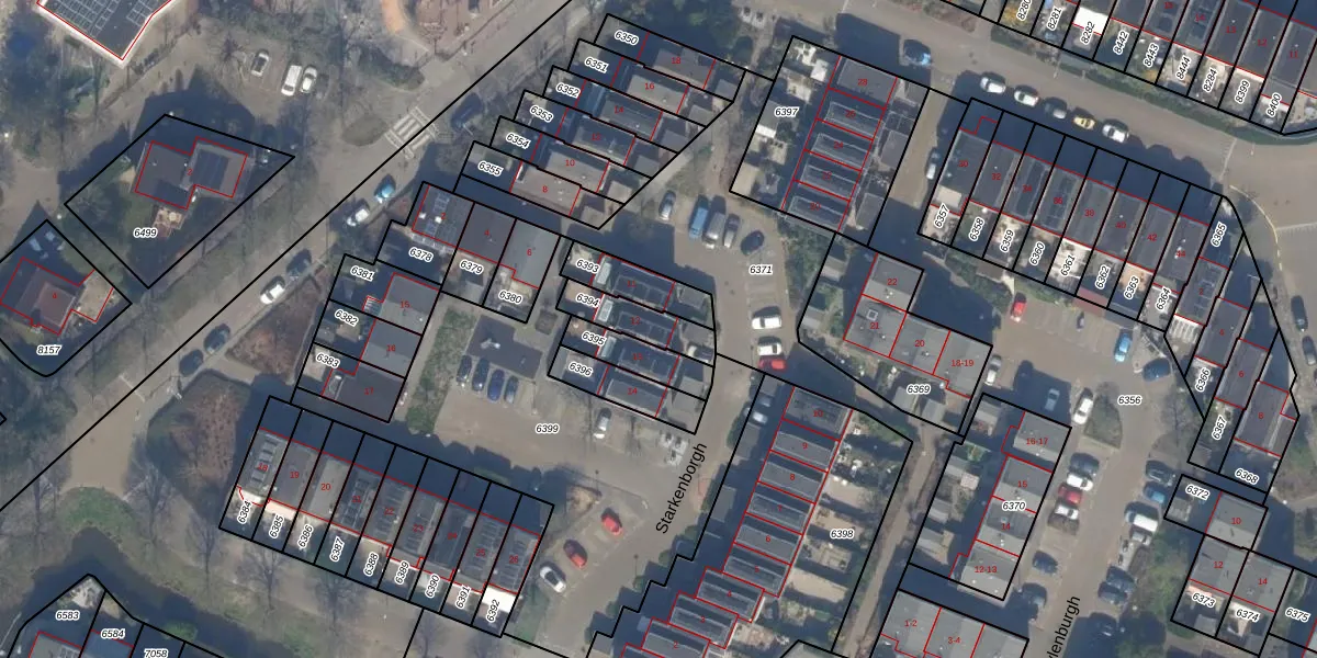 Starkenborgh 12 is gelegen op kadastraal perceel MSR00G6394. Deze kadastrale aanduiding is uniek en wordt gebruikt door het Kadaster om eigendomsrechten en andere zakelijke rechten vast te leggen. Het perceel maakt onderdeel uit van de kadastrale gemeente Monster.