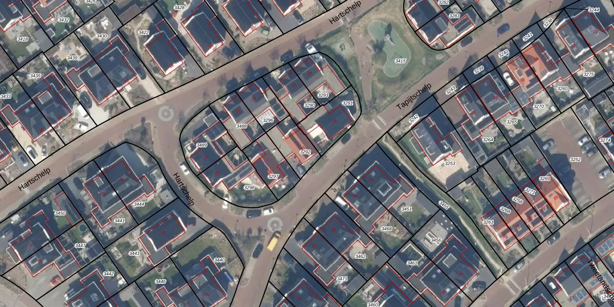 Gebruik de zoekbalk of klik op een perceel voor informatie over de adressen binnen dit perceel.