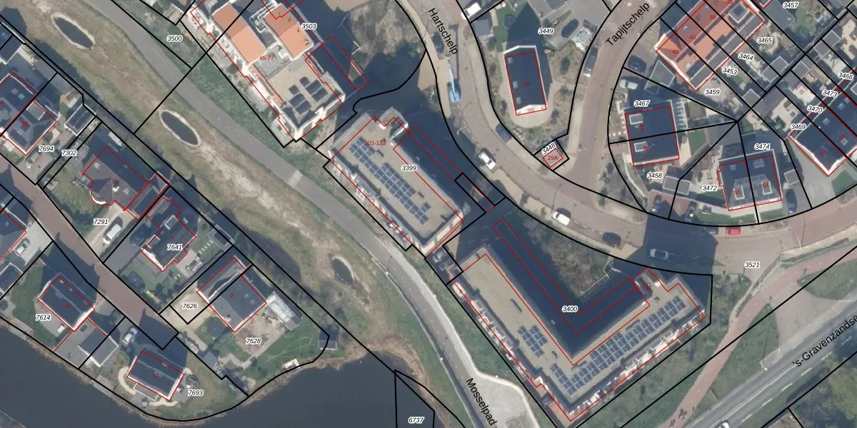 Het adres is gelegen op perceel 3399 in de sectie F en de kadastrale gemeente Monster. De kadastrale aanduiding is aldus MSR00-F-3399. Het perceel is 1035 m² groot. Dat is kleiner dan de gemiddelde perceeloppervlakte in Monster, dat op 1817,71 m² ligt. De grootste perceeloppervlakte in de kadastrale gemeente is 5,16 km². De kleinste oppervlakte bedraagt 0 m². Er zijn 16 adressen aanwezig op het perceel. De laatste wijziging in het de Basisregistratie Kadaster (BRK) was op 19-10-2021.