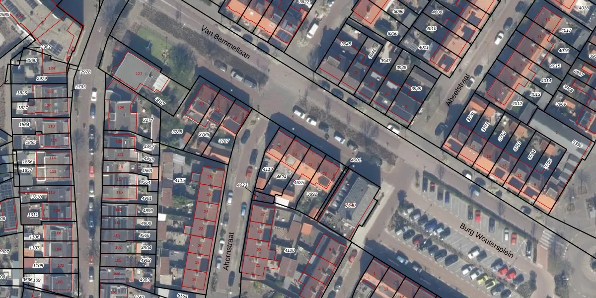 Gebruik de zoekbalk of klik op een perceel voor informatie over de adressen binnen dit perceel.