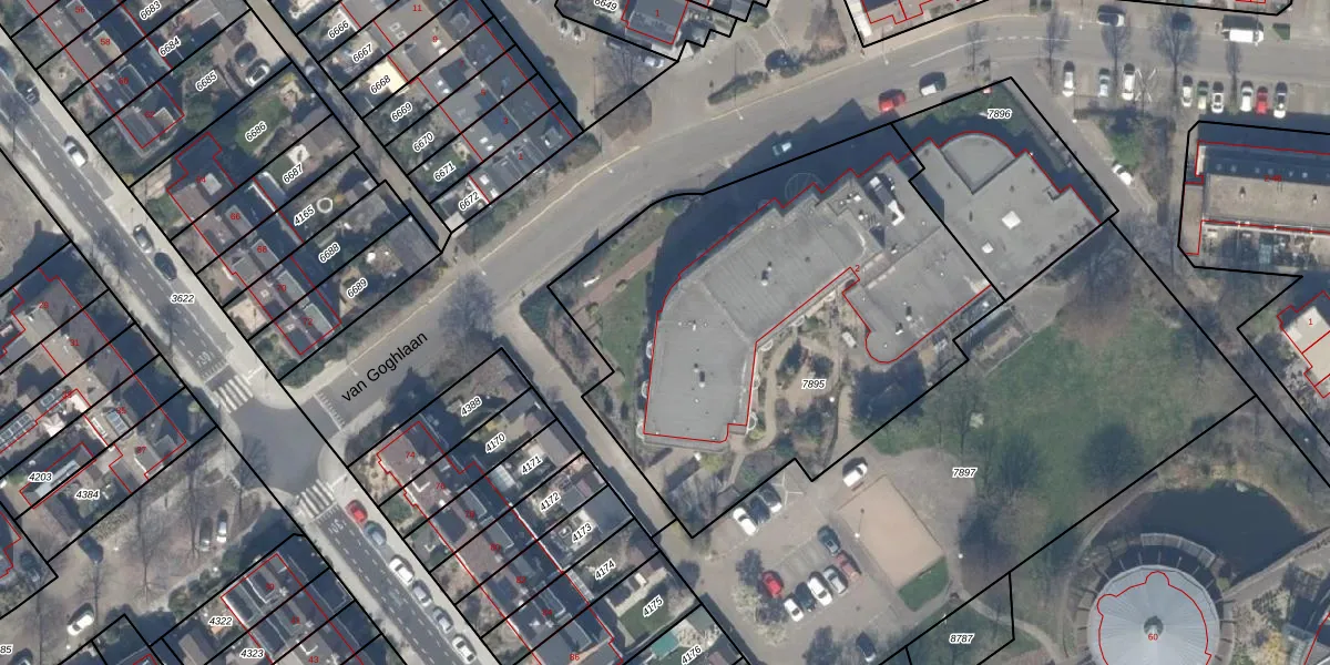 Het perceel waarop van Goghlaan 10 staat heeft een oppervlakte van 2410 m². Dit is een zeer groot perceel. De perceeloppervlakte wordt geregistreerd door het Kadaster. Gedetailleerde informatie over de maten van dit perceel kunt u vinden in het rapport Kadastrale kaart met maatvoering van van Goghlaan 10.