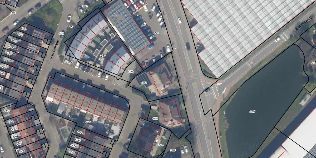 Gebruik de zoekbalk of klik op een perceel voor informatie over de adressen binnen dit perceel.