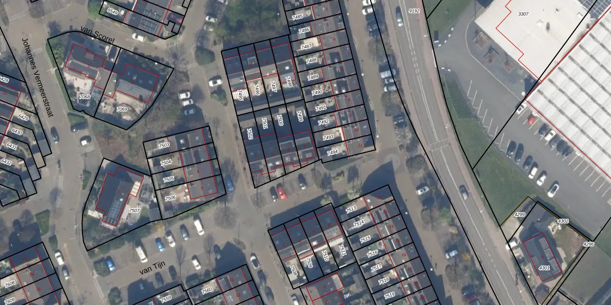 van Tijn 7 is gelegen op kadastraal perceel MSR00G7499. Deze kadastrale aanduiding is uniek en wordt gebruikt door het Kadaster om eigendomsrechten en andere zakelijke rechten vast te leggen. Het perceel maakt onderdeel uit van de kadastrale gemeente Monster.