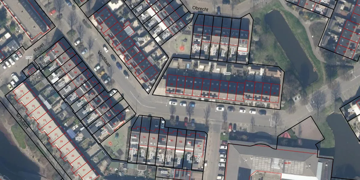 Het perceel waarop Verdilaan 65 staat heeft een oppervlakte van 1525 m². Dit is een zeer groot perceel. De perceeloppervlakte wordt geregistreerd door het Kadaster. Gedetailleerde informatie over de maten van dit perceel kunt u vinden in het rapport Kadastrale kaart met maatvoering van Verdilaan 65.