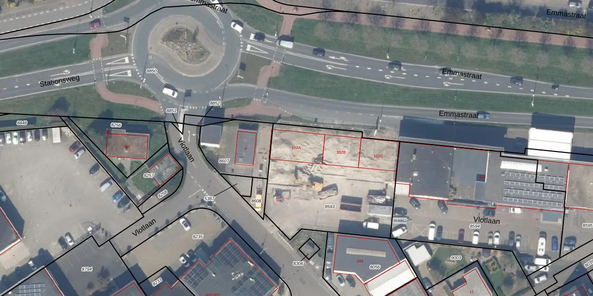 Vlotlaan 102-A is gelegen op kadastraal perceel MSR00G8593. Deze kadastrale aanduiding is uniek en wordt gebruikt door het Kadaster om eigendomsrechten en andere zakelijke rechten vast te leggen. Het perceel maakt onderdeel uit van de kadastrale gemeente Monster.
