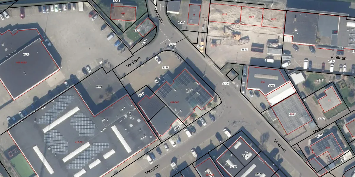 Vlotlaan 404 is gelegen op kadastraal perceel MSR00G8235. Deze kadastrale aanduiding is uniek en wordt gebruikt door het Kadaster om eigendomsrechten en andere zakelijke rechten vast te leggen. Het perceel maakt onderdeel uit van de kadastrale gemeente Monster.