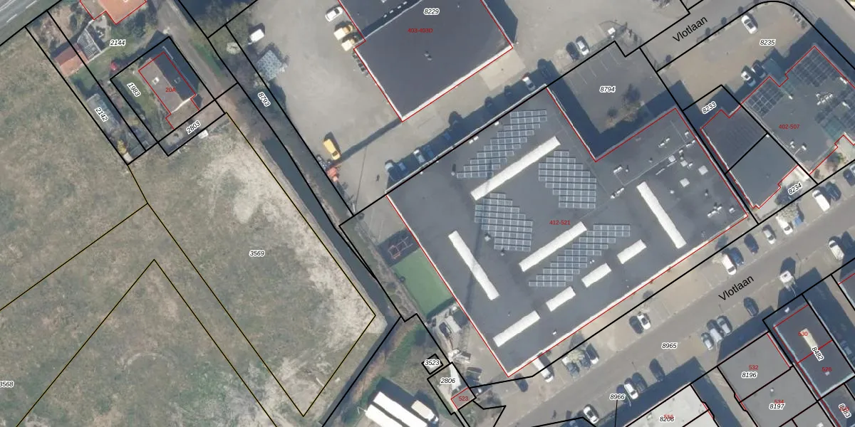 Vlotlaan 412-A is gelegen op kadastraal perceel MSR00G8794. Deze kadastrale aanduiding is uniek en wordt gebruikt door het Kadaster om eigendomsrechten en andere zakelijke rechten vast te leggen. Het perceel maakt onderdeel uit van de kadastrale gemeente Monster.