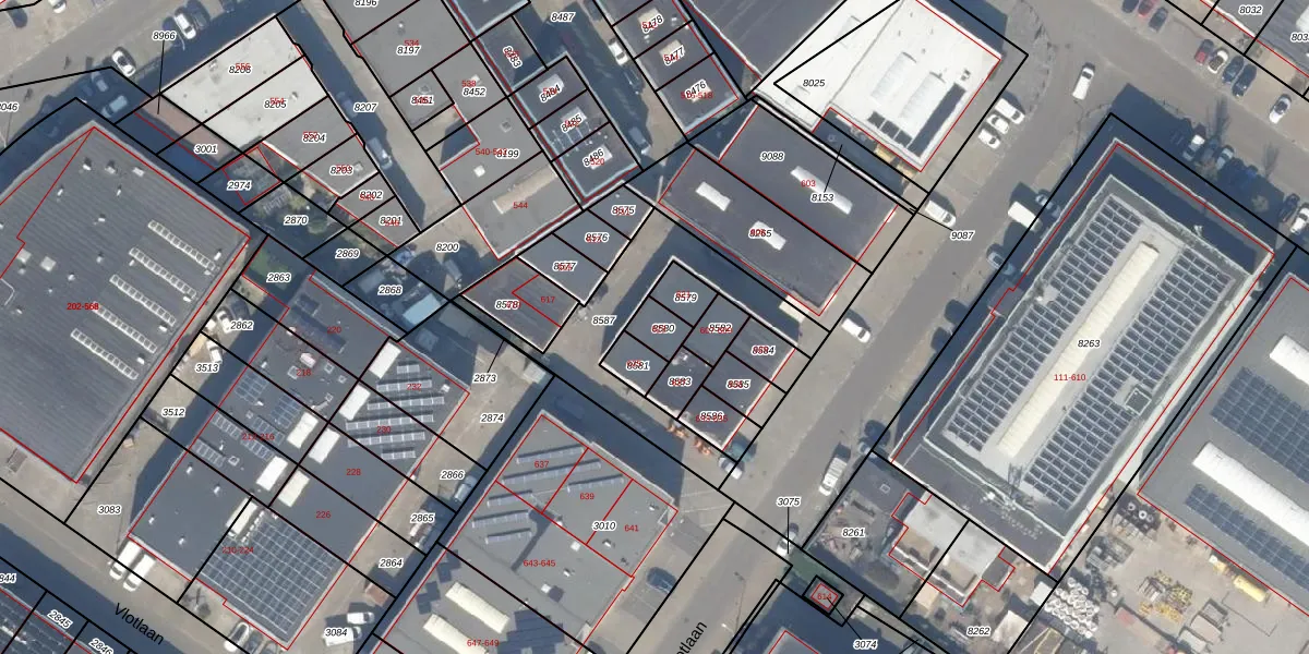 Gebruik de zoekbalk of klik op een perceel voor informatie over de adressen binnen dit perceel.