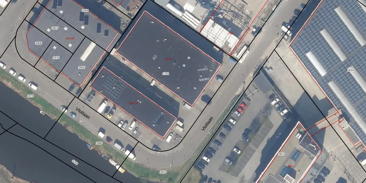 Het perceel waarop Vlotlaan 745 staat heeft een oppervlakte van 3960 m². Dit is een zeer groot perceel. De perceeloppervlakte wordt geregistreerd door het Kadaster. Gedetailleerde informatie over de maten van dit perceel kunt u vinden in het rapport Kadastrale kaart met maatvoering van Vlotlaan 745.