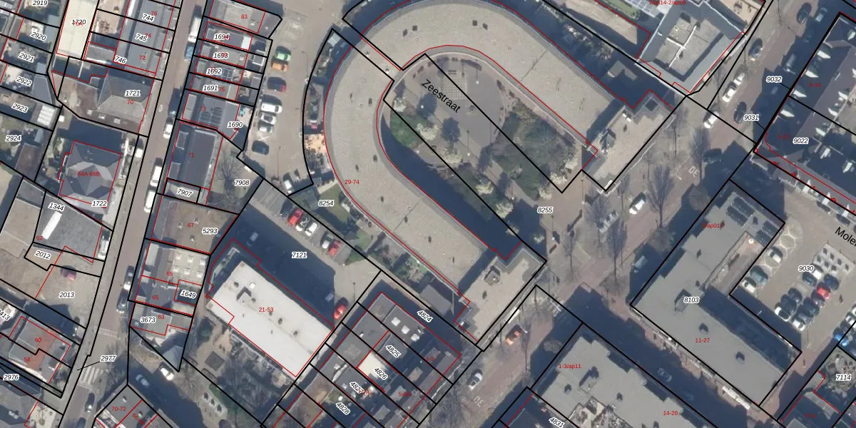 Het perceel waarop Zeestraat 40 staat heeft een oppervlakte van 1930 m². Dit is een zeer groot perceel. De perceeloppervlakte wordt geregistreerd door het Kadaster. Gedetailleerde informatie over de maten van dit perceel kunt u vinden in het rapport Kadastrale kaart met maatvoering van Zeestraat 40.
