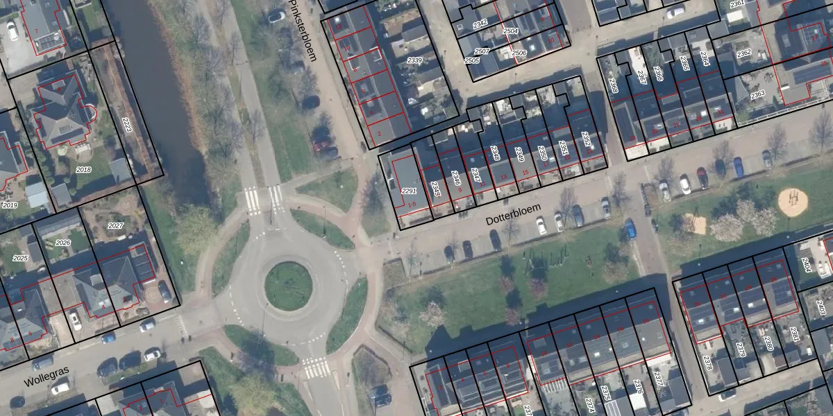 Dotterbloem 1 is gelegen op kadastraal perceel LST00G2291. Deze kadastrale aanduiding is uniek en wordt gebruikt door het Kadaster om eigendomsrechten en andere zakelijke rechten vast te leggen. Het perceel maakt onderdeel uit van de kadastrale gemeente Linschoten.