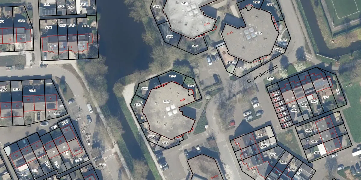 G van Damstraat 29 is gelegen op kadastraal perceel MFT01A3600. Deze kadastrale aanduiding is uniek en wordt gebruikt door het Kadaster om eigendomsrechten en andere zakelijke rechten vast te leggen. Het perceel maakt onderdeel uit van de kadastrale gemeente Montfoort.