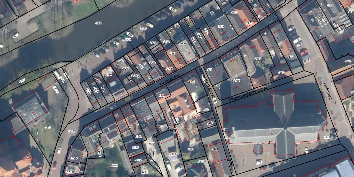 Het perceel waarop Hoogstraat 41-A staat heeft een oppervlakte van 625 m². Dit is een groot perceel. De perceeloppervlakte wordt geregistreerd door het Kadaster. Gedetailleerde informatie over de maten van dit perceel kunt u vinden in het rapport Kadastrale kaart met maatvoering van Hoogstraat 41-A.
