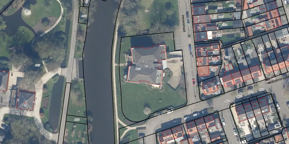 Het perceel waarop Irenestraat 3 staat heeft een oppervlakte van 2389 m². Dit is een zeer groot perceel. De perceeloppervlakte wordt geregistreerd door het Kadaster. Gedetailleerde informatie over de maten van dit perceel kunt u vinden in het rapport Kadastrale kaart met maatvoering van Irenestraat 3.